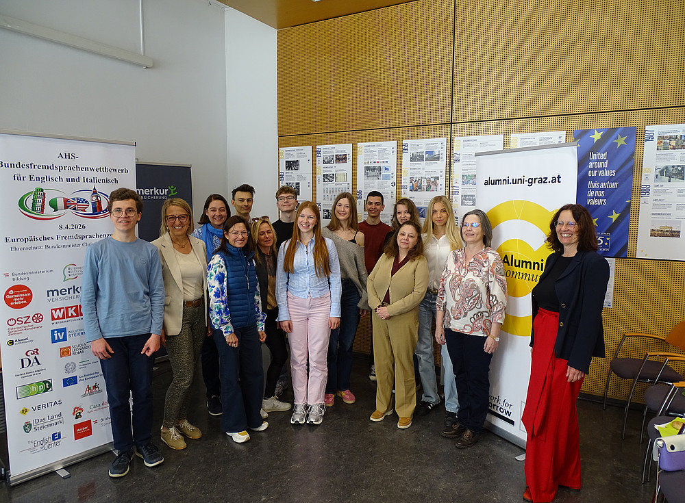 Am 8. April 2026 organisierte die Fachdidaktiklehrbeauftragte des Instituts für Romanistik Marianne Langwieser-Posawetz mit tatkräftiger Unterstützung von Studierenden sowie der Kolleg:innen Simona Bartoli-Kucher und Michele Cribari den österreichweiten Bundesfremdsprachenwettbewerb Italienisch 2026. Der Wettbewerb fand am Grazer ECML/EFSZ (Europäisches Fremdsprachenzentrum des Europarats, Nikolaiplatz) statt und umfasste neben der Italienisch-Konkurrenz auch eine im Englischen, die Heidrun Lang-Heran mit Kolleg:innen der Anglistik betreute.